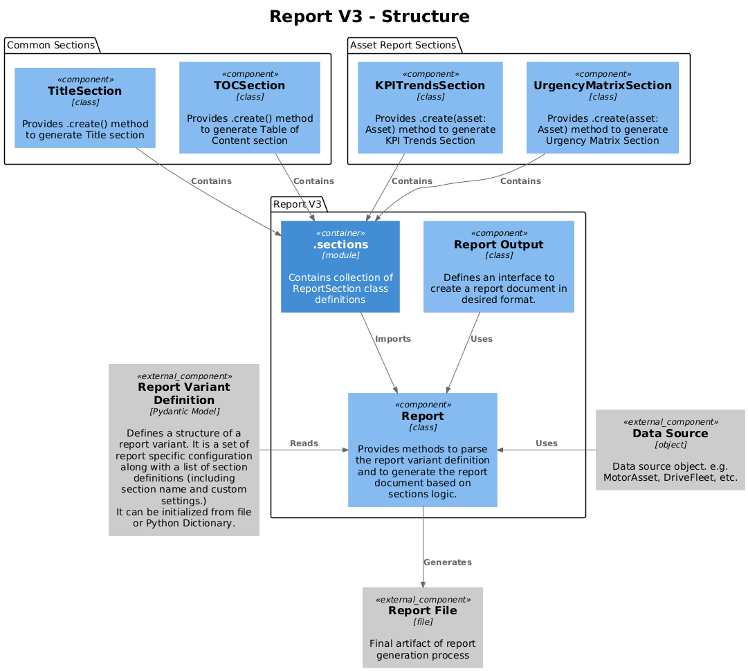 This section of documentation describes the new idea on how to define, configure and build the reports. From the lack of the better name it will be referred to as Report V3